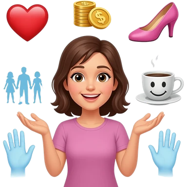 женщина думает о любовь, деньги, танцы, кофе, подруги, желания из много рук или мыслей emoji | AI Emoji Generator