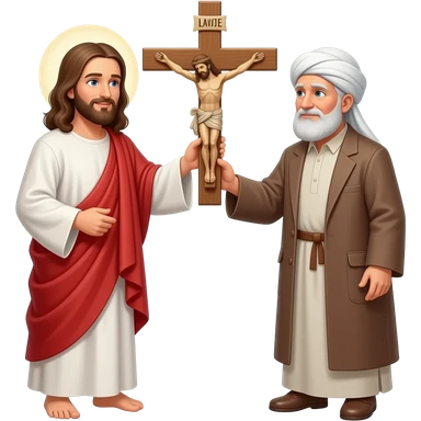 Иисус дает большой крест распятия пожилому мужчине мусульманину emoji