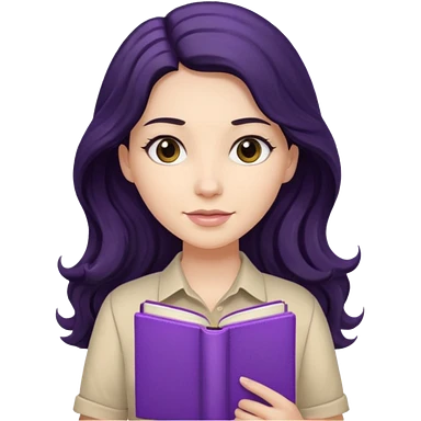 Long Hair Women with purple Book, Black wavy hair, beige shirt emoji