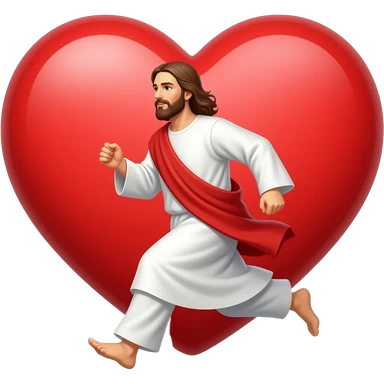 иисус бежит за меленьким сердцем, которое бежит от него emoji