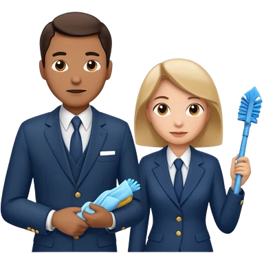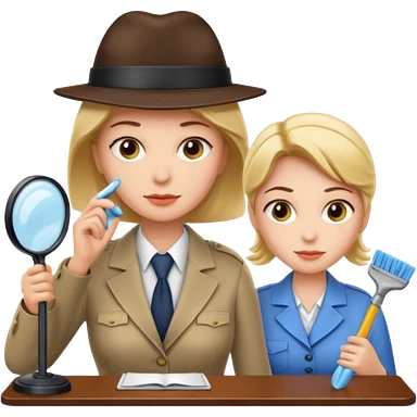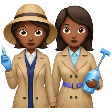 Ein Detektiv Mann in Mantel interviewt eine Putzfrau in putzgewand emoji