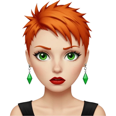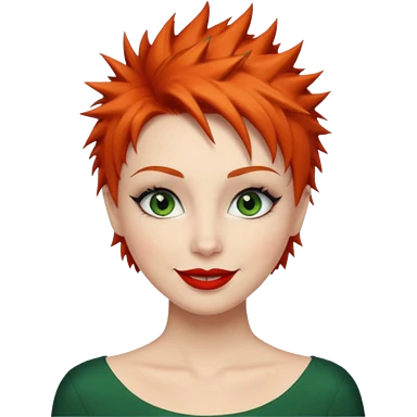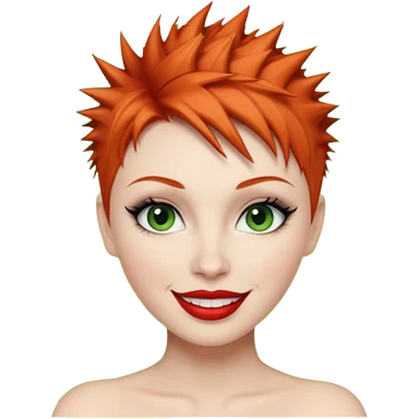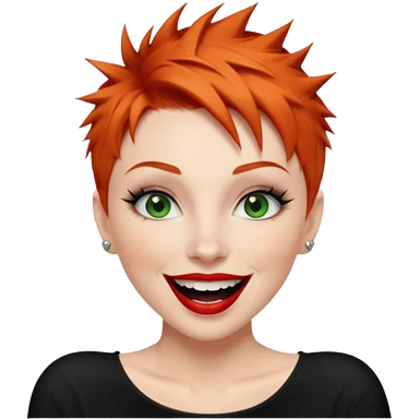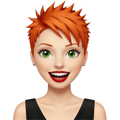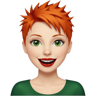 Short spikey Ginger hair, green eyes, black long eye lashes large red lips White woman happy emoji