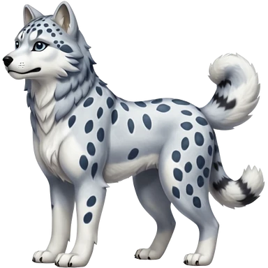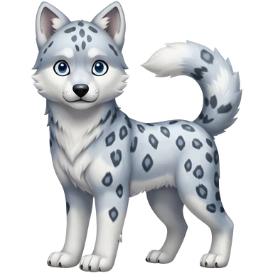 "Schnolf"-Snow-leopard-wolf-hybrid-fusion-animal-creature, full body emoji