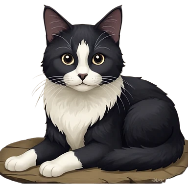 Милый черный котик с желтыми большими глазами и вислоухими ушками emoji