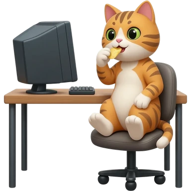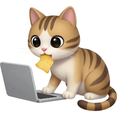Я хочу кота сидящего за компьютером и он ест чипсы! emoji