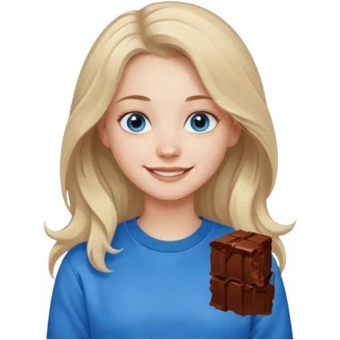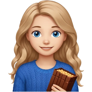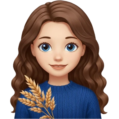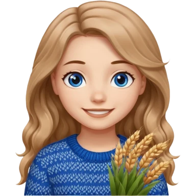 ЗГЕНЕРУЙ ДІВЧИНУ З СВІТЛИМ, ПШЕНИЧНИМ, ТРОХИ ХВИЛЯСТИМ ВОЛОССЯМ, ОДЯГНЕНУ У В'ЯЗАНИЙ ШОКОЛАДНИЙ СВЕТР. В НЕЇ ГОЛУБІ ОЧІ ТА ДОВГЕ ВОЛОССЯ, ВОНА УСМІХНЕНА emoji