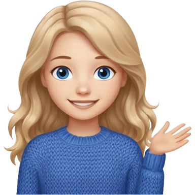 ЗГЕНЕРУЙ ДІВЧИНУ З СВІТЛИМ, ТРОХИ ХВИЛЯСТИМ ВОЛОССЯМ, ОДЯГНЕНУ У В'ЯЗАНИЙ ТІЛЕСНИЙ СВЕТР. В НЕЇ ГОЛУБІ ОЧІ ТА ДОВГЕ ВОЛОССЯ, ВОНА УСМІХНЕНА emoji