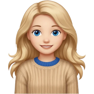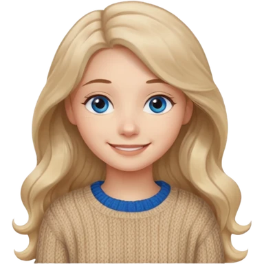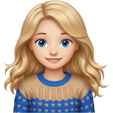 ЗГЕНЕРУЙ ДІВЧИНУ З СВІТЛИМ, БЕЖЕВИМ, ТРОХИ ХВИЛЯСТИМ ВОЛОССЯМ, ОДЯГНЕНУ У В'ЯЗАНИЙ ТІЛЕСНИЙ СВЕТР. В НЕЇ ГОЛУБІ ОЧІ ТА ДОВГЕ ВОЛОССЯ, ВОНА УСМІХНЕНА emoji