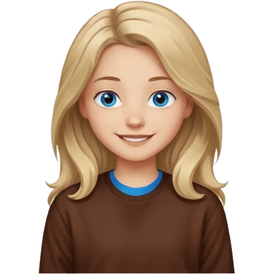 ЗГЕНЕРУЙ ОБЛИЧЧЯ ДІВЧИНИ З СВІТЛИМ, ТРОХИ ХВИЛЯСТИМ ВОЛОССЯМ, ОДЯГНЕНУ В ШОКОЛАДНИЙ СВІТШОТ, ПІД НИЗОМ ВИДНО БІЛУ ФУТБОЛКУ. В НЕЇ ГОЛУБІ ОЧІ ТА ДОВГЕ ВОЛОССЯ, ВОНА УСМІХНЕНА emoji