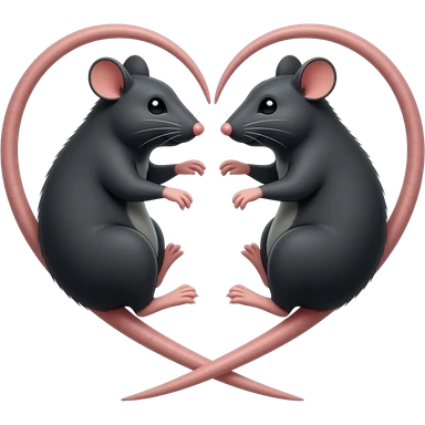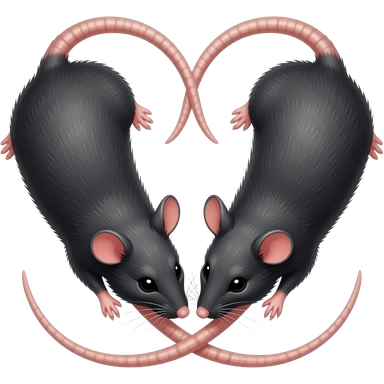 две черные крысы с хвостикам, которые образуют сердечко emoji