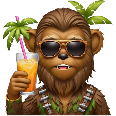 a wookiee wearing sunglasses drinking a tropical drink emoji