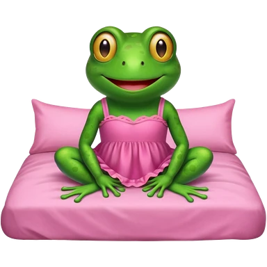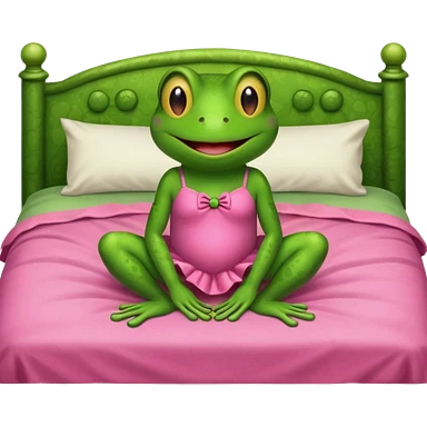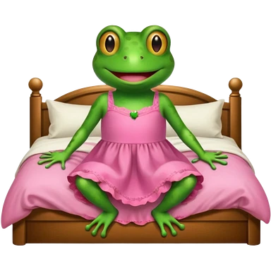 Frog in bed wearing a little pink dress emoji