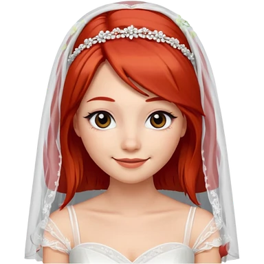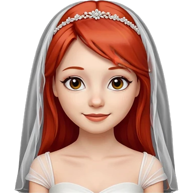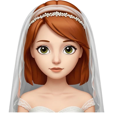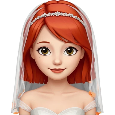 милая девушка невеста, с фатой, рыжими прямыми волосами по плечи, с черными макияжем глаз, тонкими бровями, с улыбкой, в стиле Apple avatar emoji
