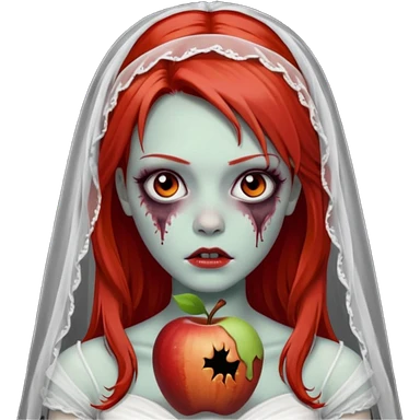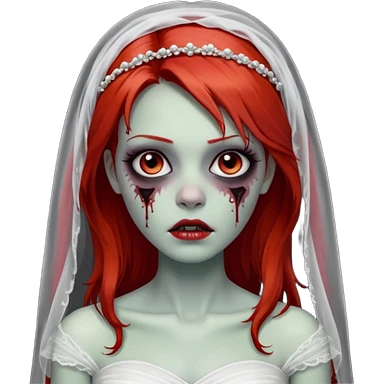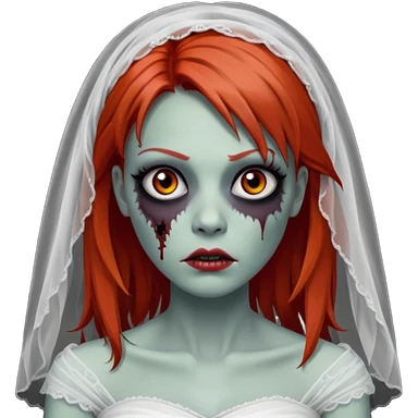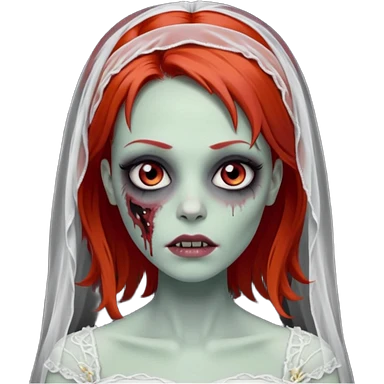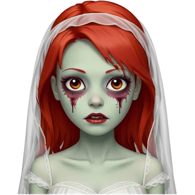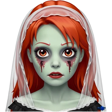 девушка зомби невеста с фатой, с рыжими прямыми волосами по плечи, с черными макияжем глаз, тонкими бровями, в стиле Apple avatar emoji
