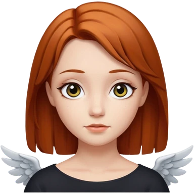 девушка ангел с рыжими прямыми волосами по плечи, с черными макияжем глаз, тонкими бровями, в стиле Apple avatar emoji | AI Emoji Generator