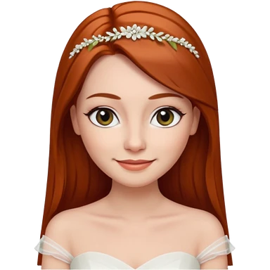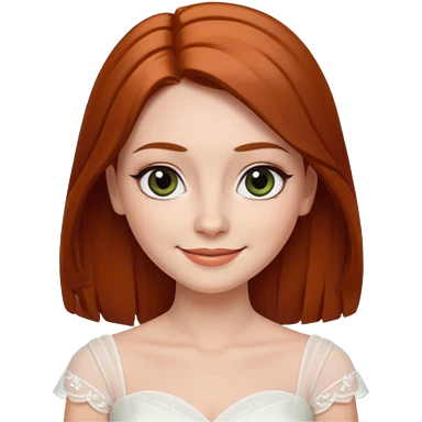 милая девушка невеста ,с рыжими прямыми волосами по плечи, с черными макияжем глаз, тонкими бровями, с улыбкой, в стиле Apple avatar emoji
