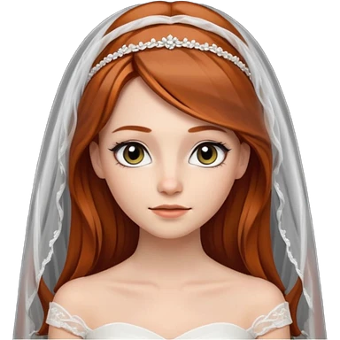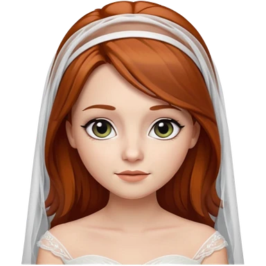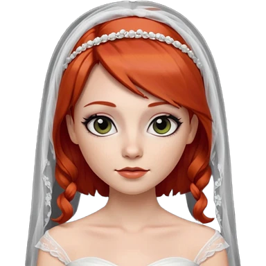 милая девушка невеста с фатой, с рыжими прямыми волосами по плечи, с черными макияжем глаз, тонкими бровями, в стиле Apple avatar emoji