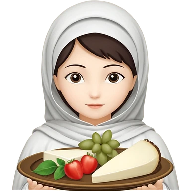девушка зомби с темными длинными прямыми волосами, с черными макияжем глаз, тонкими бровями в стиле Apple avatar, оделся в белую майку emoji