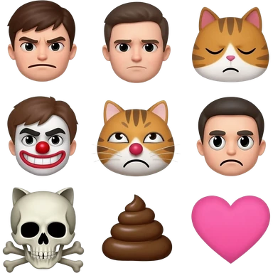 🤯😒😐😴🤬😡😞💩🤡🤓☠️😺💗 emoji