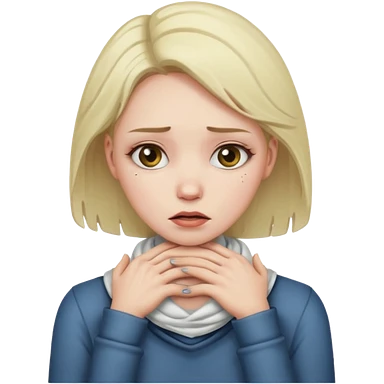Woman choking herself with dramatic face emoji