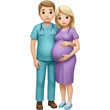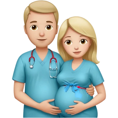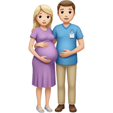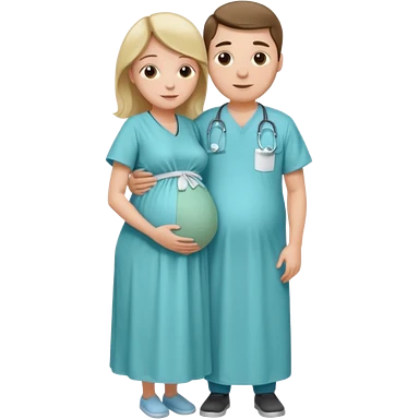 Девушка беременная, рядом ее обнимает муж и они стоят на фоне больницы emoji