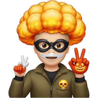 создай эмодзи грабителя, ядерного взрыва планеты и смайлик где обычный человек показывает фак emoji