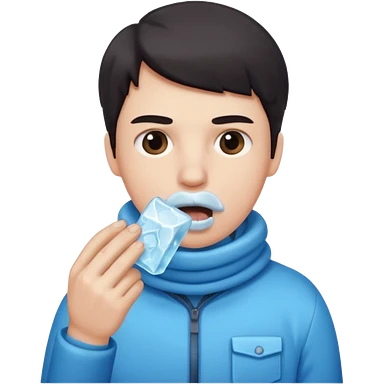 یک شکلک که یک ادم در دهان ان یخ است emoji