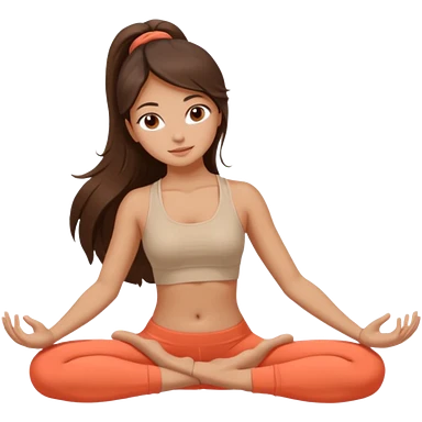 Девушка брюнетка с длинными волосами, костями глазами занимается йогой. Картинка должна были в цветах: бежевый, коралловый и коричневый emoji