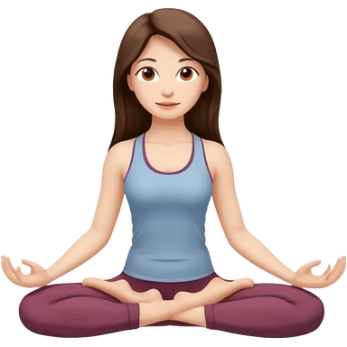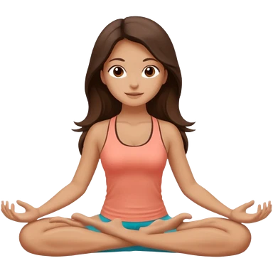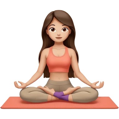 Девушка брюнетка с длинными волосами, закрытыми глазами занимается йогой. Картинка должна были в цветах: бежевый, бледно коасгый и коричневый emoji