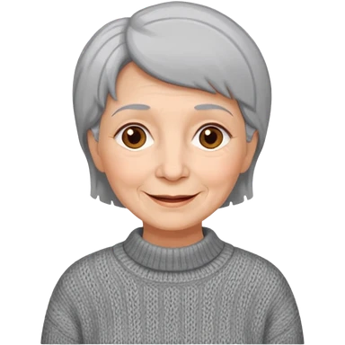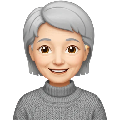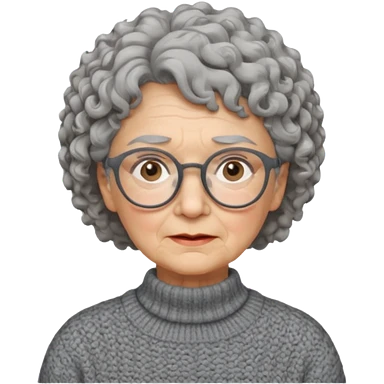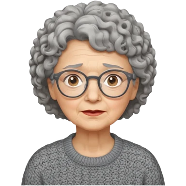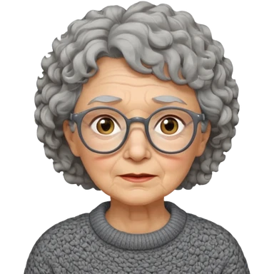 Old woman, solemn, wearing glasses and sweater, short curly hair emoji