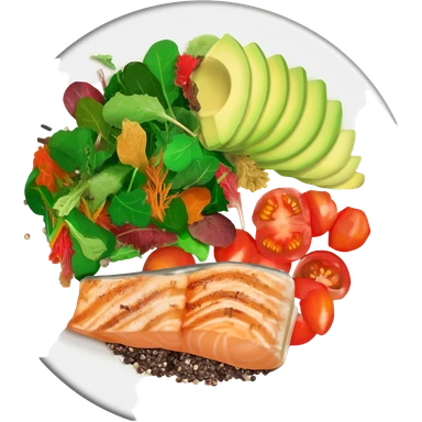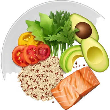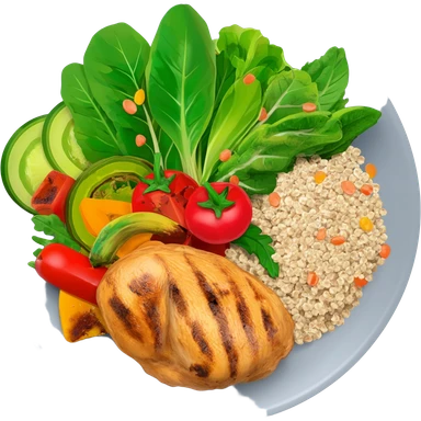 тарелка с едой которая разделена по частям, на половине лежат овощи а другую половину пополам делят мясо и крупа emoji