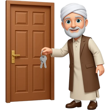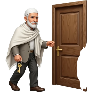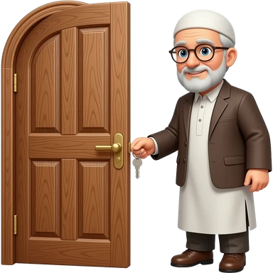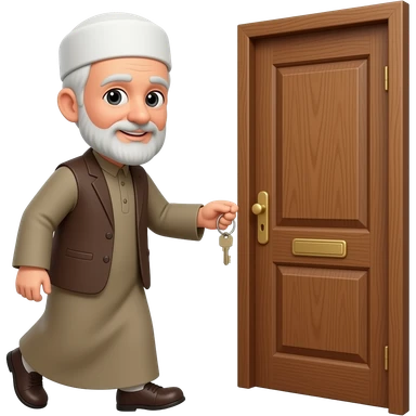 пожилой мужчина мусульманин с ключами подходит к деревянной двери emoji