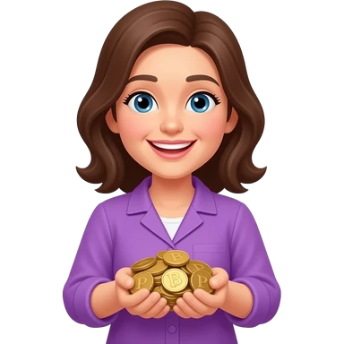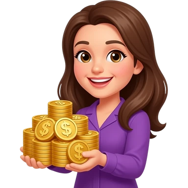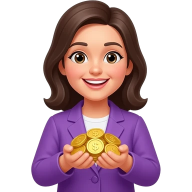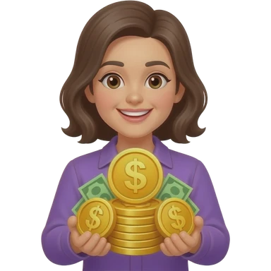 Счастливая женщина с кучей золота в фиолетовой одежде emoji