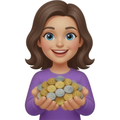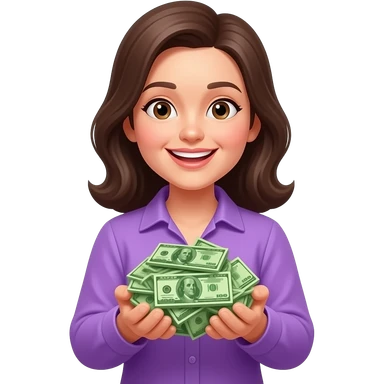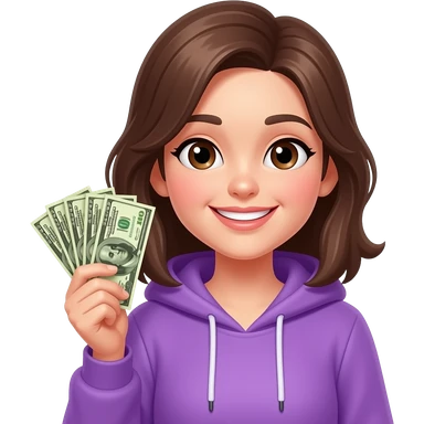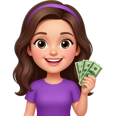 Счастливая девочка с деньгами в фиолетовой одежде emoji