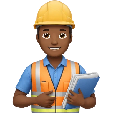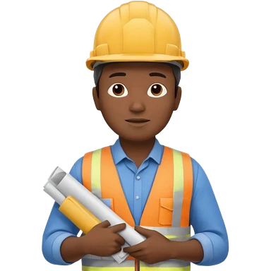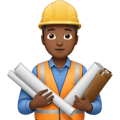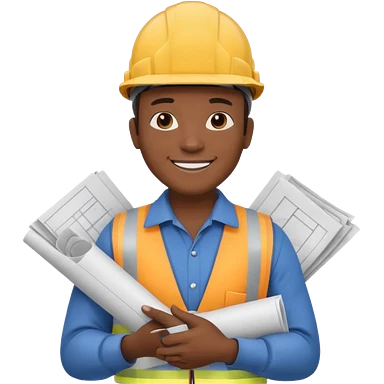 Сгенерируй мне индонезийца в чуть рисованном стиле, в каске и с чертежом в руках. По пояс. На однородном фоне. Он строитель emoji