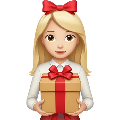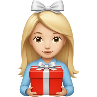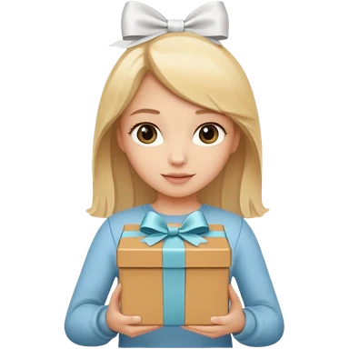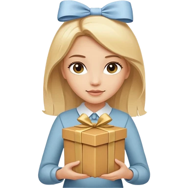 сгенерируй светловолосую девушку, держащую светло-коричневую подарочную коробку с бантиком emoji