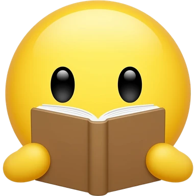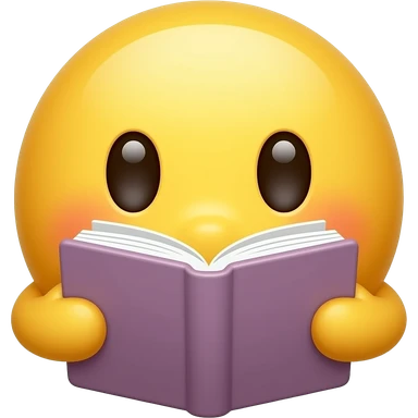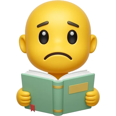 고민을 하는 이모지 왼쪽으로 기우뚱 오른쪽으로 기우뚱하면서 손에는 책을 들고 있는 이미지, 남성의 형태가 아니라 노란색 기본 이모지의 형태, 눈알의 형태를 좀 더 단순하게 표현하고, 책의 커버 색깔 = ' 5cFFD1' emoji