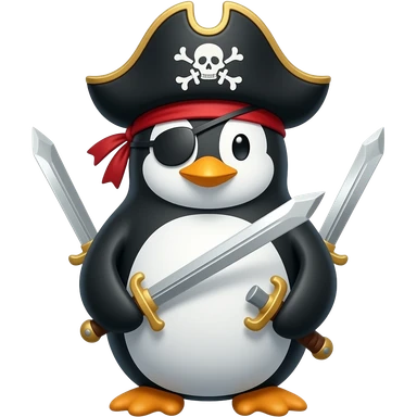 Fais-moi un 🐧 avec un chapeau de pirate et trois sabres emoji