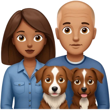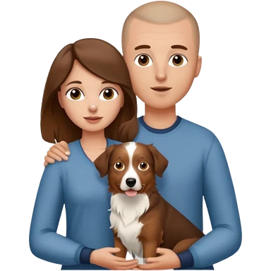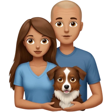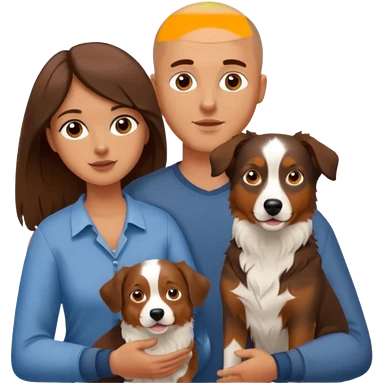 Couple with brown Aussie dog . Man shaved head white , woman long brown hair white skin emoji