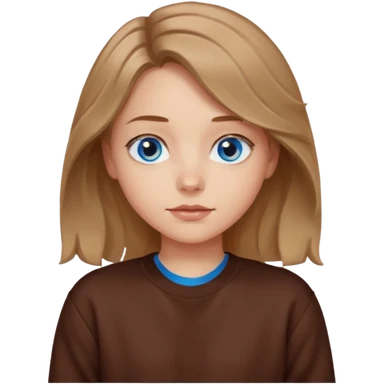 ЗГЕНЕРУЙ ОБЛИЧЧЯ ДІВЧИНИ З СВІТЛИМ, ТРОХИ ХВИЛЯСТИМ ВОЛОССЯМ, ОДЯГНЕНУ В ШОКОЛАДНИЙ СВІТШОТ, ПІД НИЗОМ ВИДНО БІЛУ ФУТБОЛКУ. В НЕЇ ГОЛУБІ ОЧІ ТА ДОВГЕ ВОЛОССЯ, ВОНА УСМІХНЕНА emoji | AI Emoji Generator