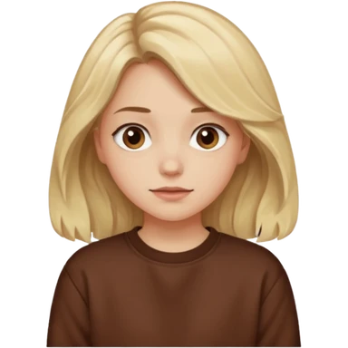 ЗГЕНЕРУЙ ОБЛИЧЧЯ ДІВЧИНИ З СВІТЛИМ, ТРОХИ ХВИЛЯСТИМ ВОЛОССЯМ, ОДЯГНЕНУ В ШОКОЛАДНИЙ СВІТШОТ emoji