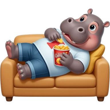 людиноподібний бегемот лежить на дивані та їсть чіпси emoji