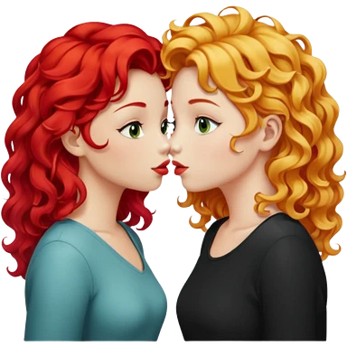 two girls kissing, one with long straight red hair, the other with long curly blonde hair emoji
