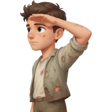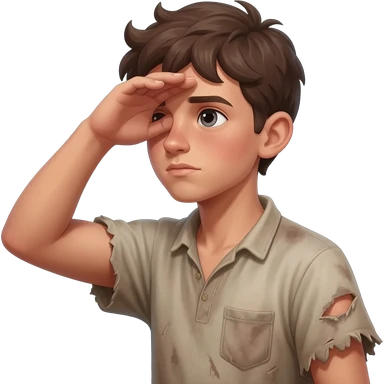 нарисуй парня бедного в рваной грязной одежде 22-24 года, он смотрит в даль с горы, и вглядывается держа руку над глазами времена древнего иерусалима emoji