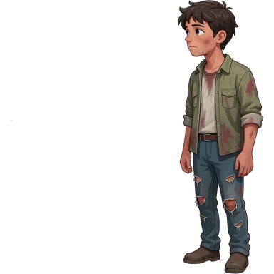 нарисуй раскаявшегося молодого человека в рваной одежде возрастом 20-24 года во весь рост , времена древнего иерусалима emoji