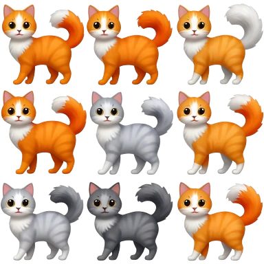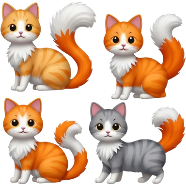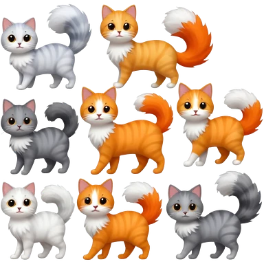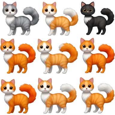 Cat with Fluffy Tails different color emoji