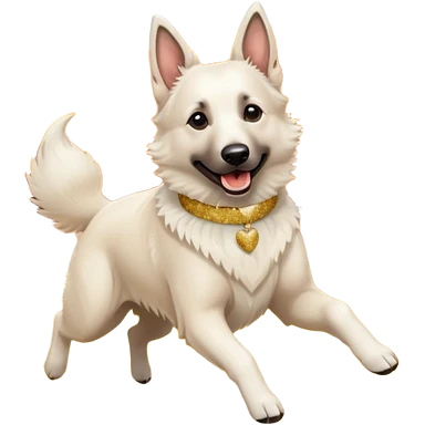 White belgian Shepard with Glitter collar jump in Leaves in autumn and Love it emoji