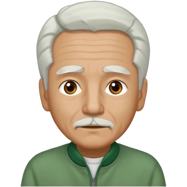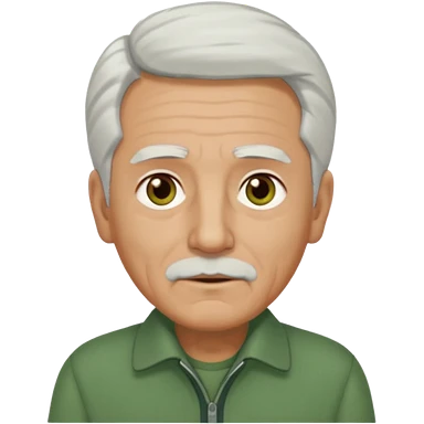 abuelo con pelo blanco, ojos cafés y ropa verde emoji
