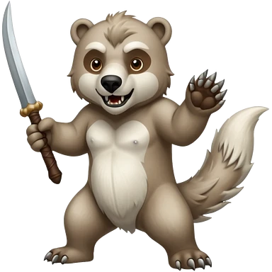 Completely brown polar bear with a wolf’s tail and long sabertooth fangs emoji