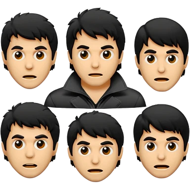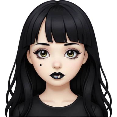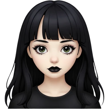 Gothic gir, black hair with bangs, slightly wavy, very long hair,long eyelashes, black eyes. emoji